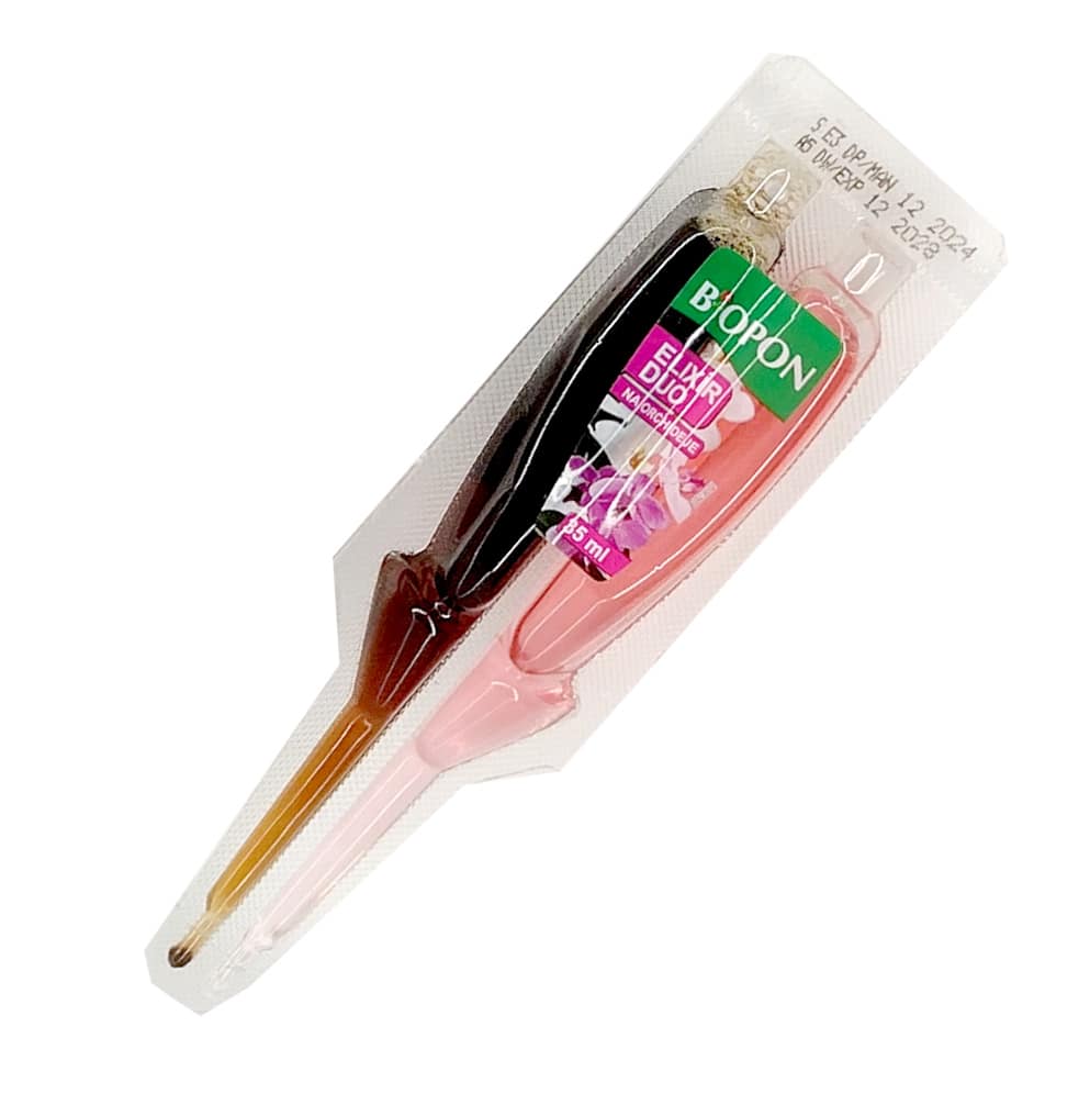 Inovativní dvousložkové hnojivo pro výživu a rychlou regeneraci všech druhů orchidejí, které obsahuje huminové kyseliny a fulvokyseliny. Obzvlášť doporučujeme pro rostliny, které trpí problémy jako: pomalý růst, nedostatečné kvetení, chřadnoucí kořenový systém, ale je vhodný i pro zdravé rostliny, jako prevence. Růžový kondicionér s makroživinami dodává základní živiny potřebné pro růst a kvetení a hnědý regenerátor je bohatý na huminové kyseliny, které rostliny posilují a zmírňují stres způsobený jejich přesazováním nebo nesprávnou péčí. Kombinace kondicionéru a regenerátoru obnovuje vitalitu rostlin, jejich zdravý vzhled a také krásné barvy květů a listů. Aplikátor se dvěma segmenty umožňuje dávkování správné dávky hnojiva a regenerátoru současně. K jejich smíchání dojde až v zemině, což usnadňuje vstřebávání živin a dalších látek rostlinami.