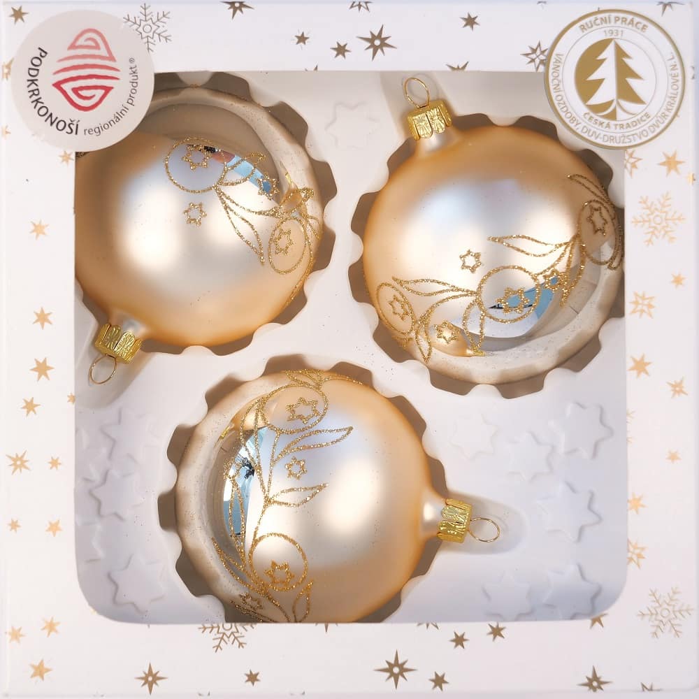 vánoční skleněné ozdoby koule stříbrné se zlatým zdobením