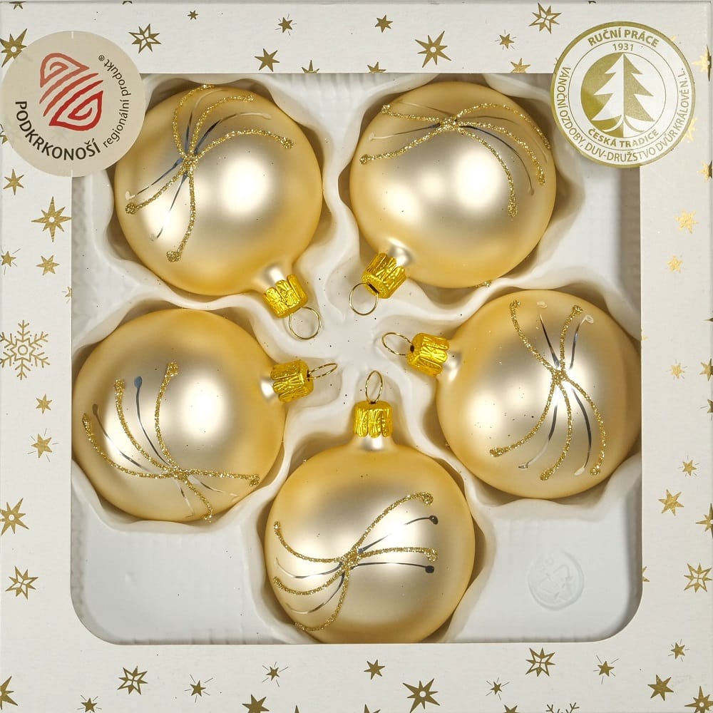 vánoční skleněné ozdoby zlaté koule se stříbrným zdobením 60 mm