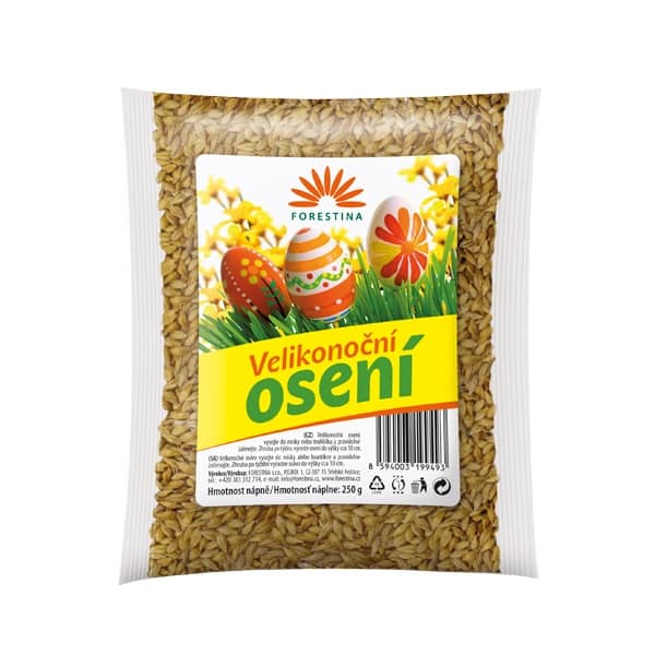 Popis:Sedm až deset dnů před Velikonocemi naplňte misku zeminou, hustě pokryjte osivem a zasypte 0,5 – 1 cm vrstvou další zeminy. Povrch udržujte vlhký. Po vzejití a při nárůstu větším než 10 cm je možné zastřihnout na libovolnou výšku. Složení:
